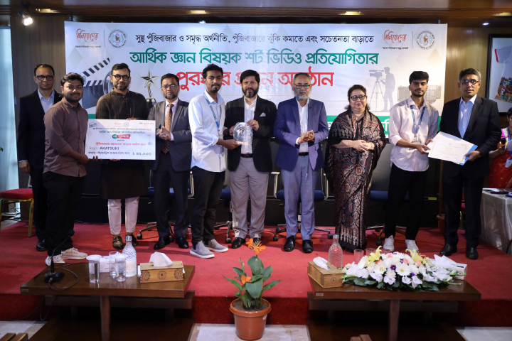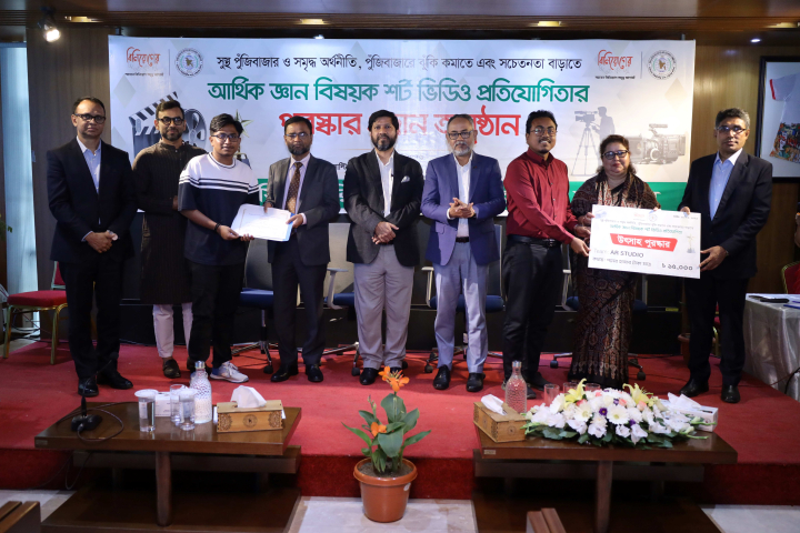 পুঁজিবাজারে ঝুঁকি কমাতে এবং সচেতনতা বাড়াতে আর্থিক জ্ঞান বিষয়ক সৃজনশীল শর্ট ভিডিও (১-২ মিনিট) প্রতিযোগিতার পুরষ্কার বিতরণী অনুষ্ঠান ২০২৬বিএসইসি’র উদ্যোগে আয়োজিত সুস্থ পুঁজিবাজার ও সমৃদ্ধ অর্থনীতি, পুঁজিবাজারে ঝুঁকি কমাতে এবং সচেতনতা বাড়াতে ‘আর্থিক জ্ঞান বিষয়ক শর্ট ভিডিও প্রতিযোগিতা’র পুরস্কার বিতরণী অনুষ্ঠান গত ১২ এপ্রিল ২০২৬, রবিবার রাজধানীর আগারগাঁও-এ বিএসইসি’র মাল্টিপারপাস হলে (৩য় তলায়) অনুষ্ঠিত হয়। এপ্রিল ২২, ২০২৬ | |||||||||||||||